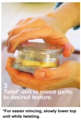 - For easy mincing, keep the two halves of the Garlic Twist slightly apart while twisting it back-and-forth. This would allow the garlic to be shredded layer-by-layer. If done properly, the Garlic Twist would enable garlic to be minced with minimal effort.
