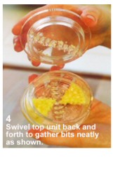 A: Hold the two halves of the Garlic Twist slightly apart while you twist back and forth. This allows you to shred the garlic cloves layer-by-layer. If this is done correctly, hardly any effort is required. Alternatively, drop in two cloves of crush-peeled garlic inside the bottom half of the Garlic Twist, then position the top half such that its mincing teeth are directly on top of the cloves; then push it down to allow the mincing teeth to crunch into the cloves breaking them apart for effortless mincing.