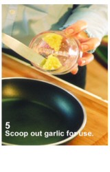 - For best control, use a table knife or spoon to push the two chunks of neatly gathered minced garlic piles out for use starting from the center of the bowl.
